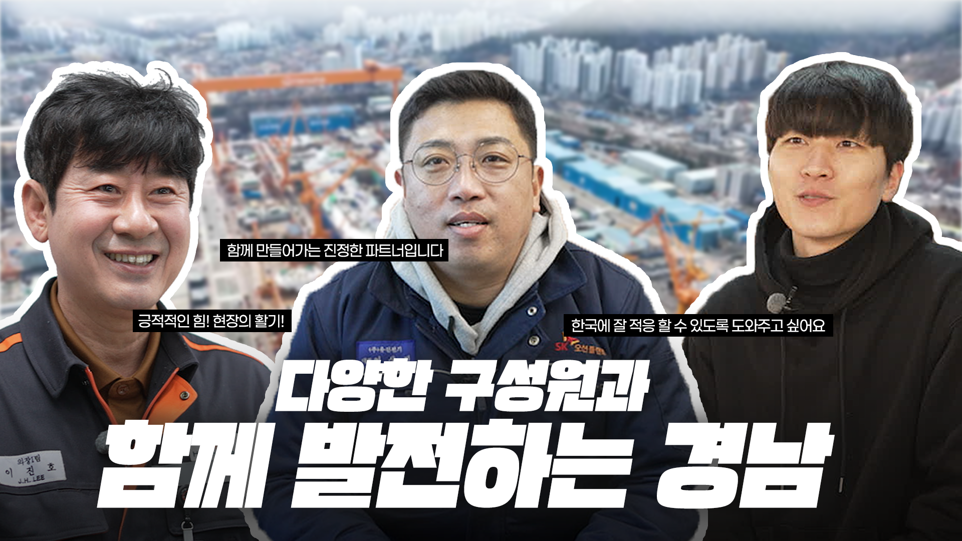 외국인 근로자를 향한 편견을 해소하고, 함께 성장하는 일터의 모습을 담은 캠페인 영상을 제작했습니다. 한화오션, SK플랜트, 김해 동상시장 등 제조 현장부터 재래시장까지 다양한 삶의 터전을 조명했습니다.